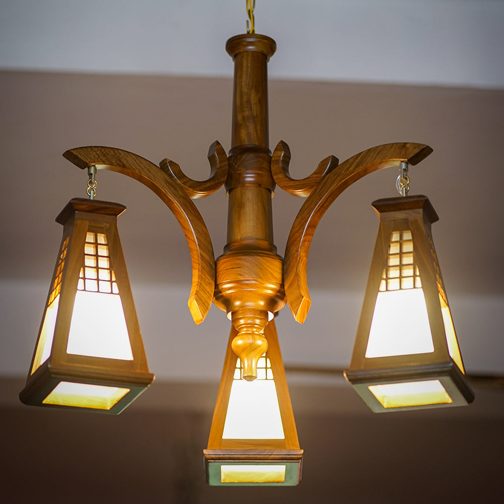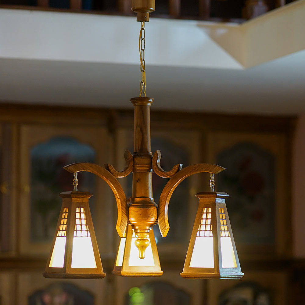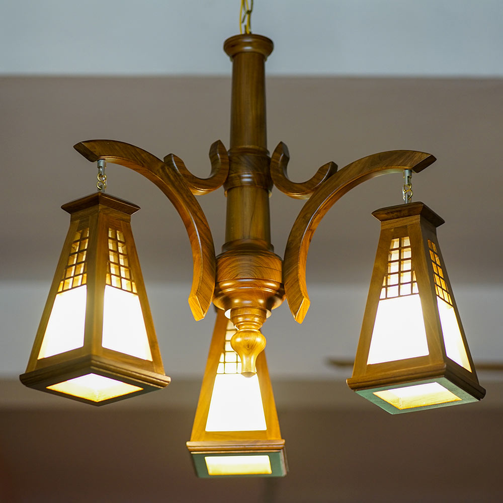 This stunning wooden chandelier is the perfect way to add a touch of elegance and sophistication to any room. Made from solid wood, it features a cascading design of intricate curves and swirls. The warm glow of the lights will create a warm and inviting atmosphere, making it the perfect focal point for any dining room, living room, or bedroom.